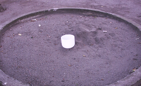 折角、砂場が丸いので中心で奏でてると、近所の犬が鳴き始めました。