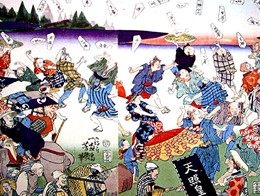 鬼はきれいな花をもってきた。キキョウ、山ギク、オミナエシ・・花ばかりではない。みやげばなしもたくさんした。あさもやのなかを走るおてんとうさまの光の矢。ツノウシ山に降った真っ白い雪。かっきり青く澄んだ秋の大空・・燃えるようなもみじの葉・・・。けれど、娘の目は見えぬ。どうにかしたいと鬼は思った。