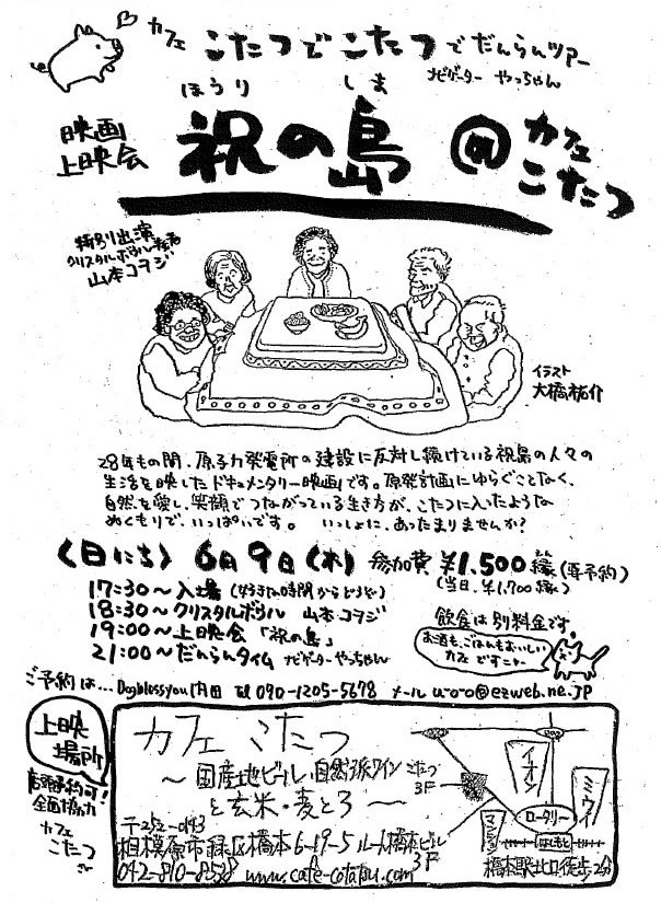 今日(6月17日)、『地球交響曲第六番(虚空の音)』に出演しているKNOB(ノブ)さんから連絡がありました。そして7月6日『第六番』上映時に出演してくれるというのです。しかも、ボランティアで。粋です!粋すぎです!KNOB(ノブ)さんありがとうございます。