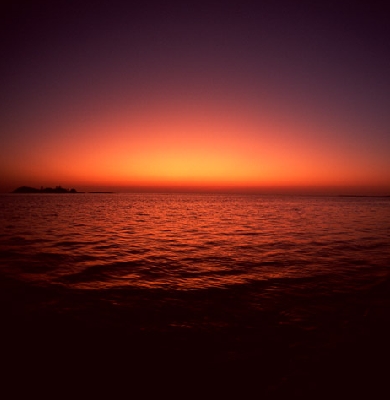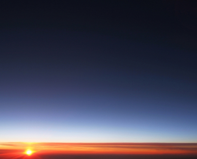 果てしない濃いブルーにオレンジ色が沁み出して行く。